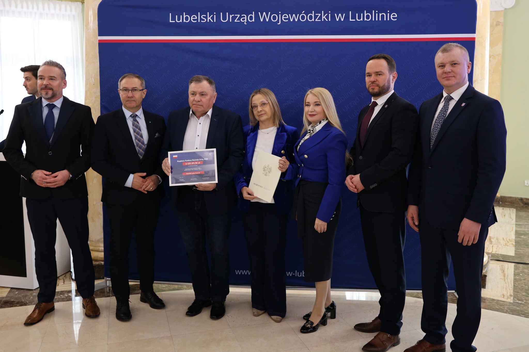 Umowę z Wojewodą Lubelskim Krzysztofem Komorskim podpisali: Wicestarosta Lubartowski Fryderyk Puła, Członek Zarządu Powiatu Sebastian Wysok oraz Skarbnik Powiatu Elżbieta Remiszewska.